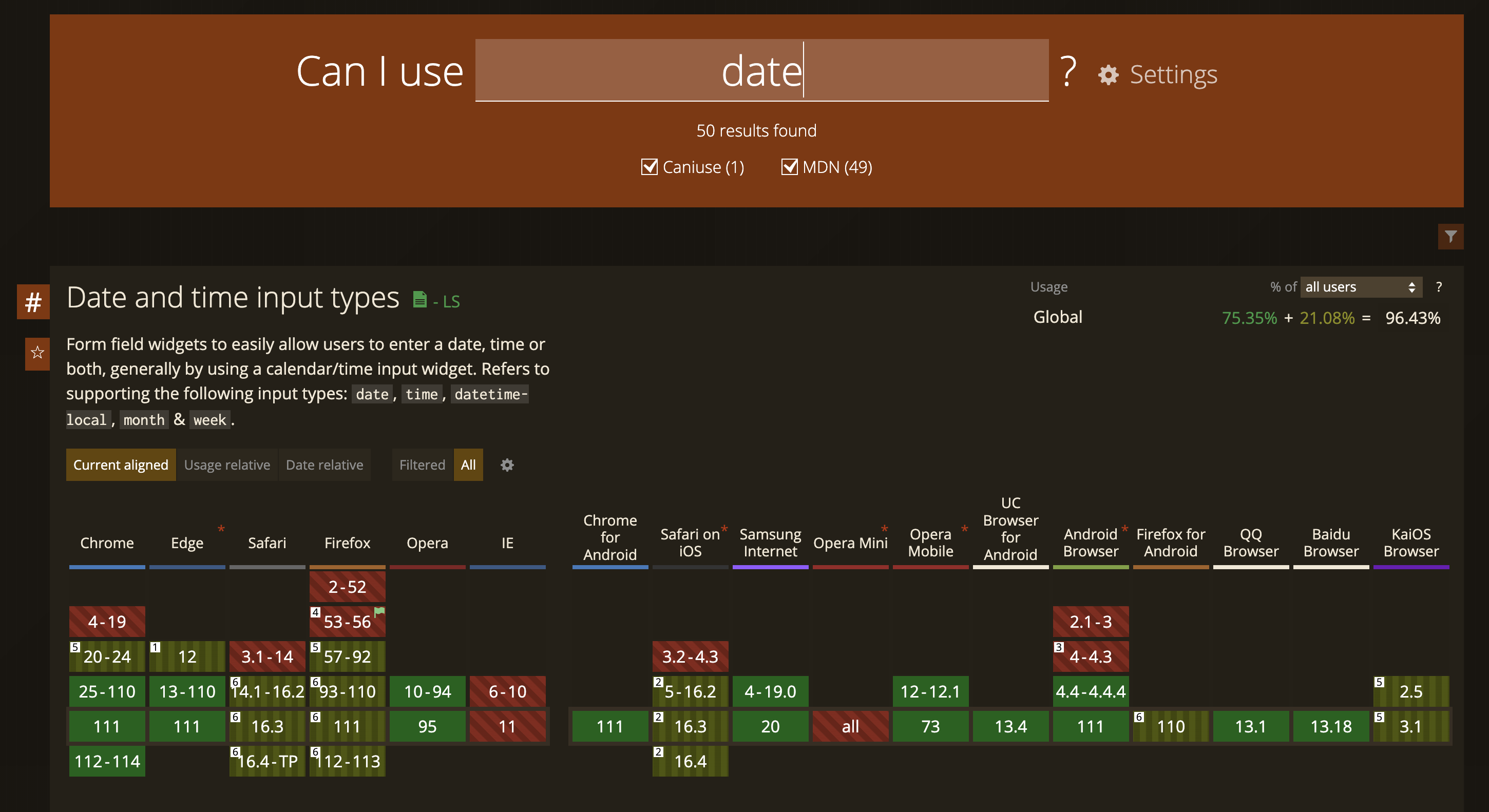 직접 테스트 서버를 통해 브라우저 별 테스트를 해보는 방법도 있겠지만, 모질라 MDN 사이트를 통해 기능적인 부분에 있어 브라우저 호환성 부분까지 확인을 할 수가 있다.
